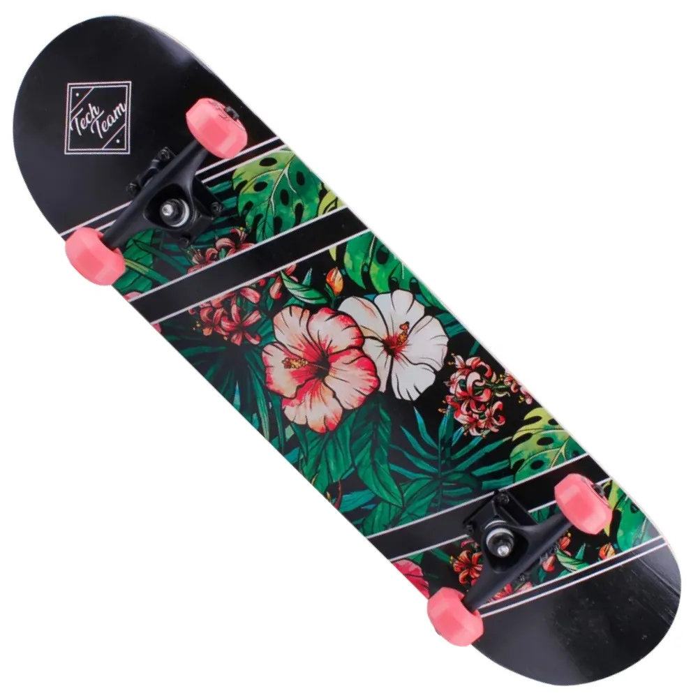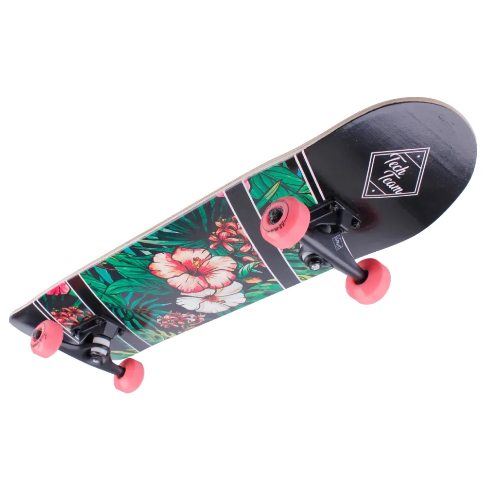 ДЕРЕВЯННЫЙ СКЕЙТБОРД TECH TEAM X-GAME цветы стал хитом этого сезона и лидером продаж. Модель создана для новичков подростков и старшего поколения весом до 80 кг. Технические характеристики скейта превзошли ожидания. Производитель постарался над производством, учел ошибки предыдущей модели и пожелания райдеров-профессионалов.