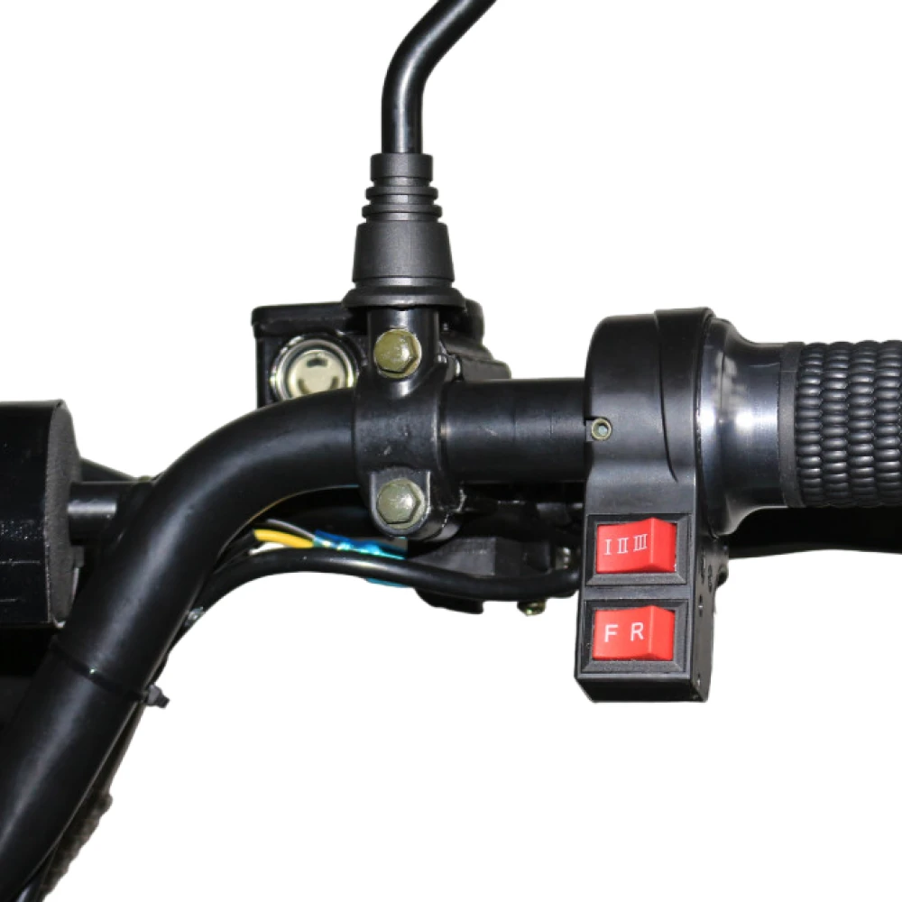 Модель выглядит круто, воинственно, моментально привлекает внимание других участников движения. Вместительное сиденье, удобная рулевая часть, возможность отслеживания скоростных показателей, степени зарядки батареи и других параметров увеличивает степень комфорта, исключает непредвиденные ситуации в пути. При мощности электродвигателя в 1500 Вт модель развивает скорость до 40 км/час. При пониженной передаче техника может становиться на дыбы. Большие легко сцепляемые с поверхностями колеса способны преодолевать препятствия. Наличие большой светодиодной фары допускает эксплуатацию тс в любое время суток и непогоду. Для оформления заказа предлагаем сделать телефонный звонок менеджеру или оставить заявку на нашем официальном сайте.