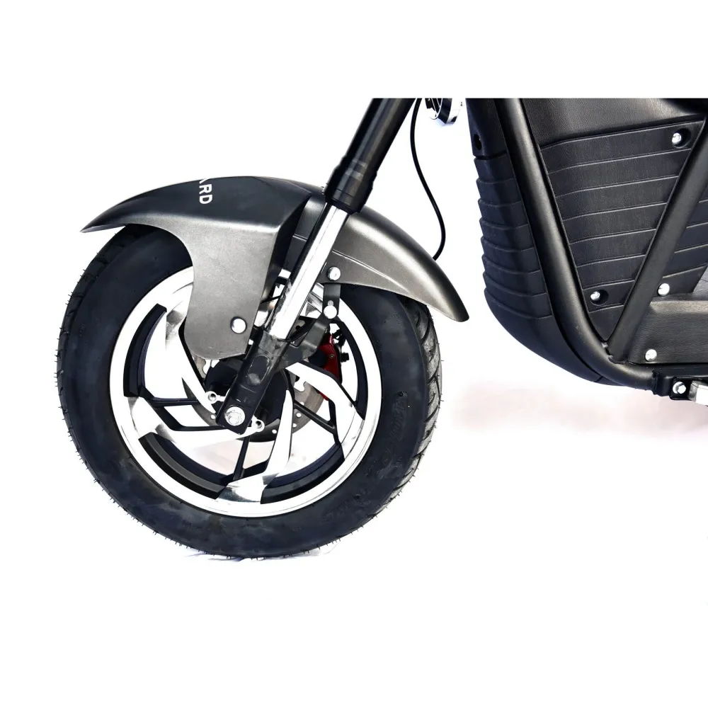 Электроскутер оснащен мощным мотор-колесом на 3950 Вт, емкой батареей на 50 А*ч, которые способны выжимать скорость автомобиля – 79 км/час, мощи которых достаточно на преодоление расстояния 110 км. Батарея заряжается быстро, для полной зарядки достаточно 5 часов. Колесная часть 13 и 12-дюймовая, бескамерная, надувная с давлением 2,7 атмосферы.