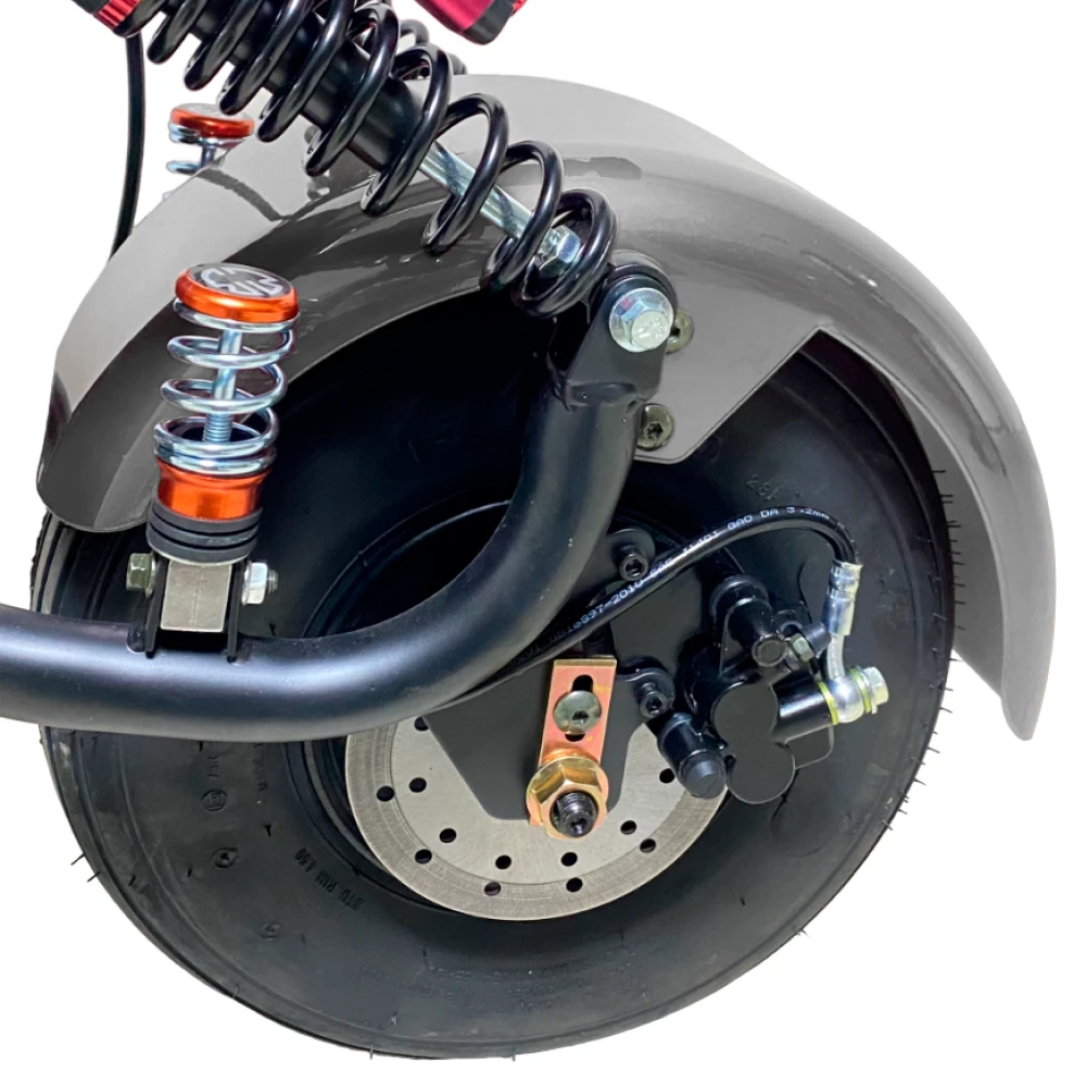 Citycoco GT X5 имеет большие 15-дюймовые колеса и передний и задний амортизаторы, которые обеспечивают комфортное передвижение в городской среде. В сочетании с мощным двигателем и регулируемой подвеской, вы можете быть уверены, что поездка будет плавной и комфортной даже на неровной поверхности.