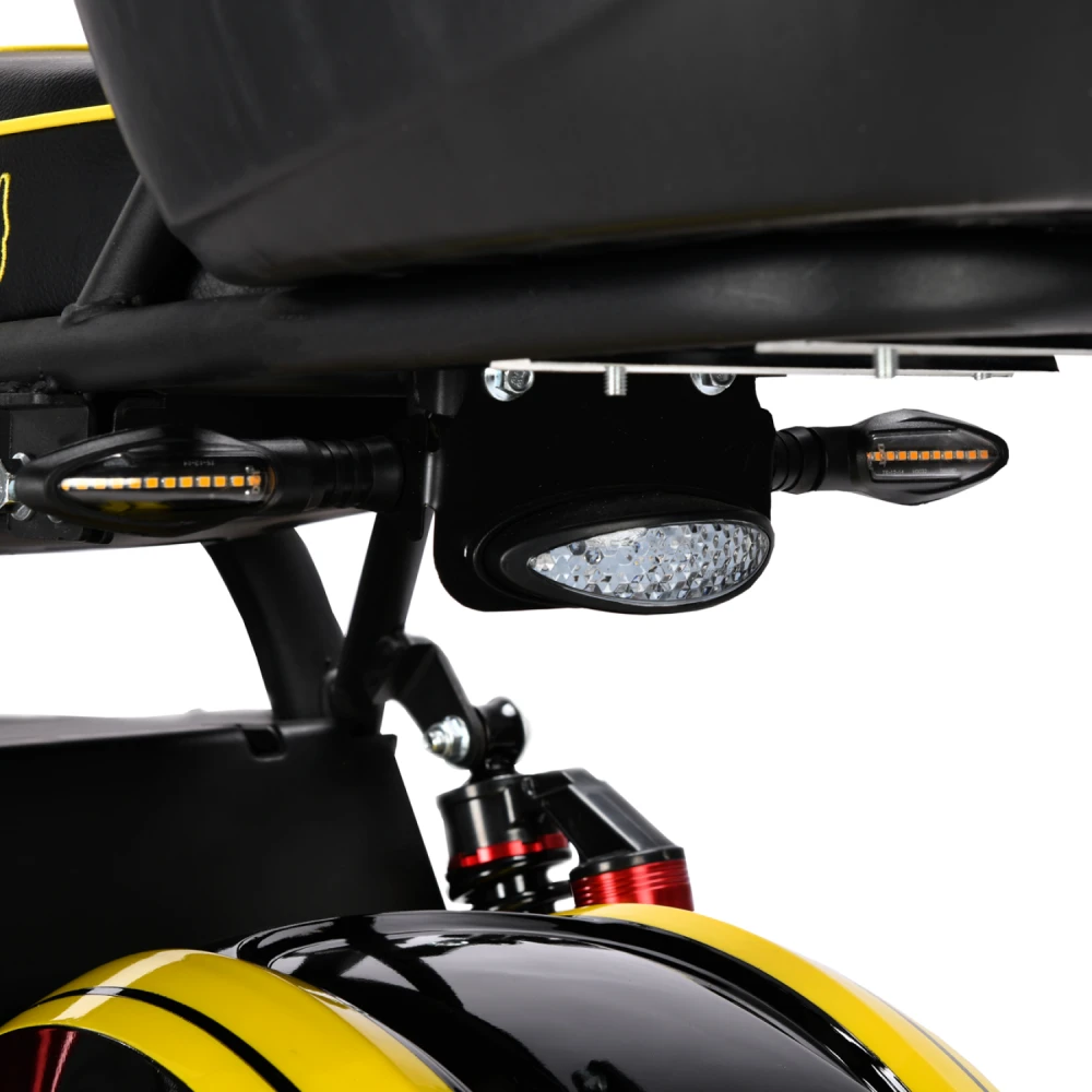 Гидравлические дисковые тормоза останавливают с 40 км/ч за 3–4 м, эффективны на скользком; передняя/задняя масляная амортизация гасит вибрации на неровностях (до 80% поглощения). LED-фары/поворотники/стопы обеспечивают видимость; соответствует CE/EAC (предположительно, как импорт из РФ/КНР); нет ABS, но есть сигнализация и блокировка. Рекомендации: шлем, скорость <25 км/ч в пешеходках, вес <макс; защита аккумулятора — BMS от перегрева/КЗ (температура <60°C).