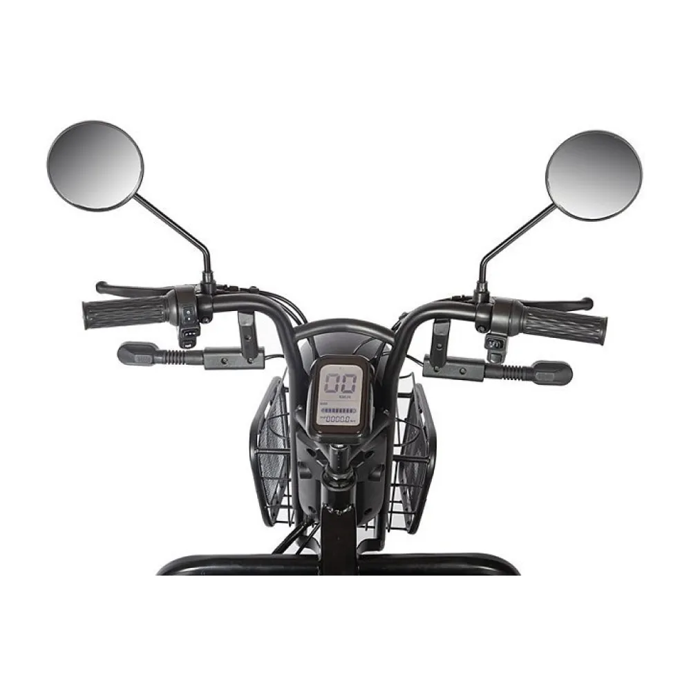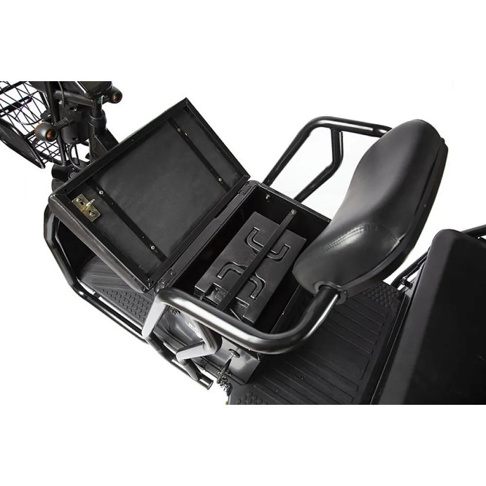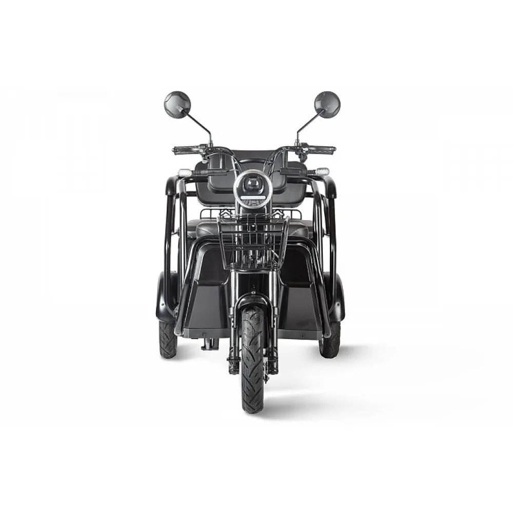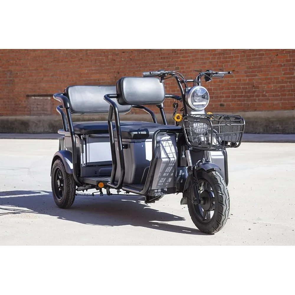 Модель оснащена новым электромотором, способным развить скорость до 25 км/час и проехать на одной подзарядке до 30 км пути. При этом следует знать тяговое АКБ в комплектацию не входит. Мягкие комфортные сиденья напоминают диван, изготовлены из премиум материала, готовым показать пассажирам высокий уровень комфорта. При необходимости водитель может трансформировать заднее сиденье превратив его в грузовой отсек для транспортировки вещей.