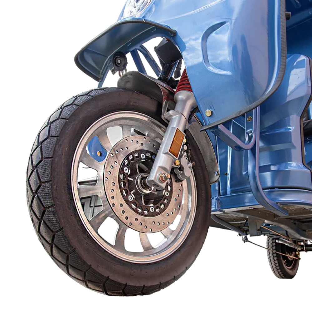 Кроме того, трицикл оснащен усиленными гидравлическими амортизаторами в передней подвеске, что обеспечивает комфорт и плавность хода даже на неровных дорогах.