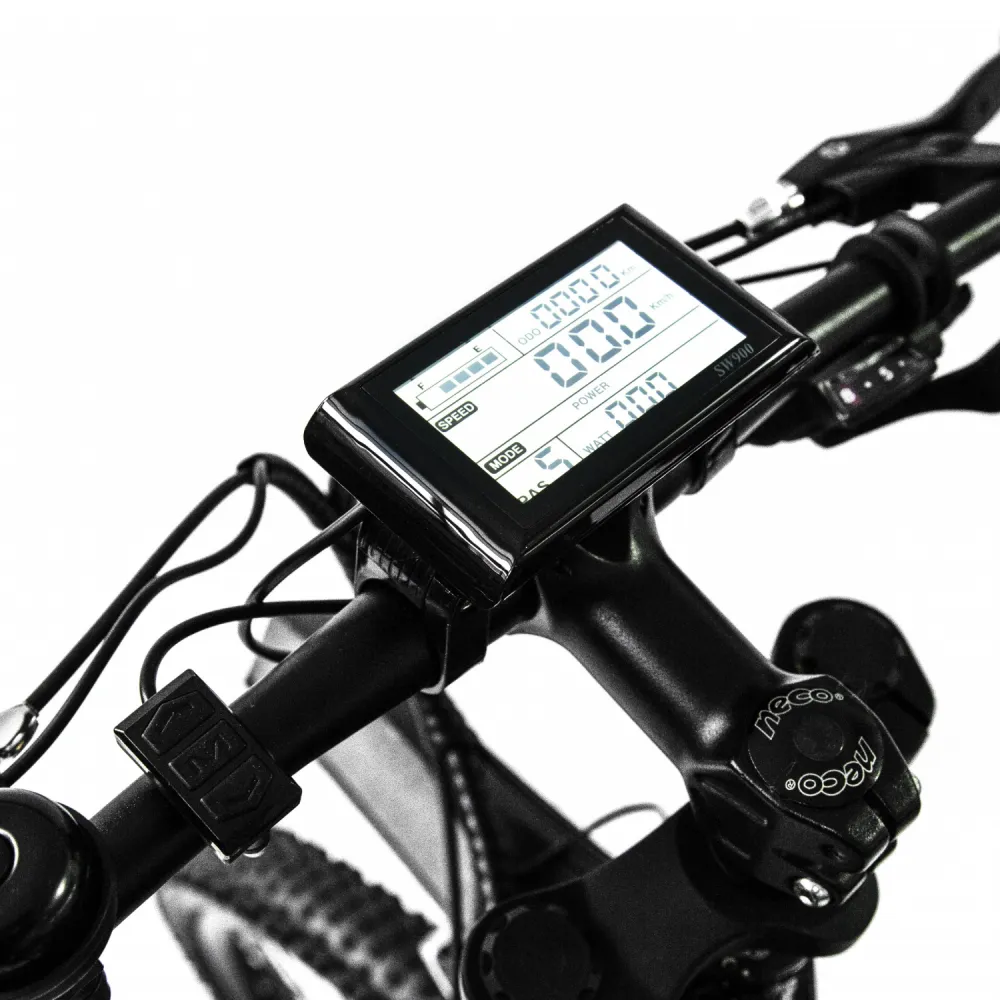 Все будет под вашим контролем: LCD монитор покажет основные характереристики электровелосипеда, ручка газа подключит нужную вам скорость движения и уровень мощности, дополнительная кнопка переключит механические передачи.