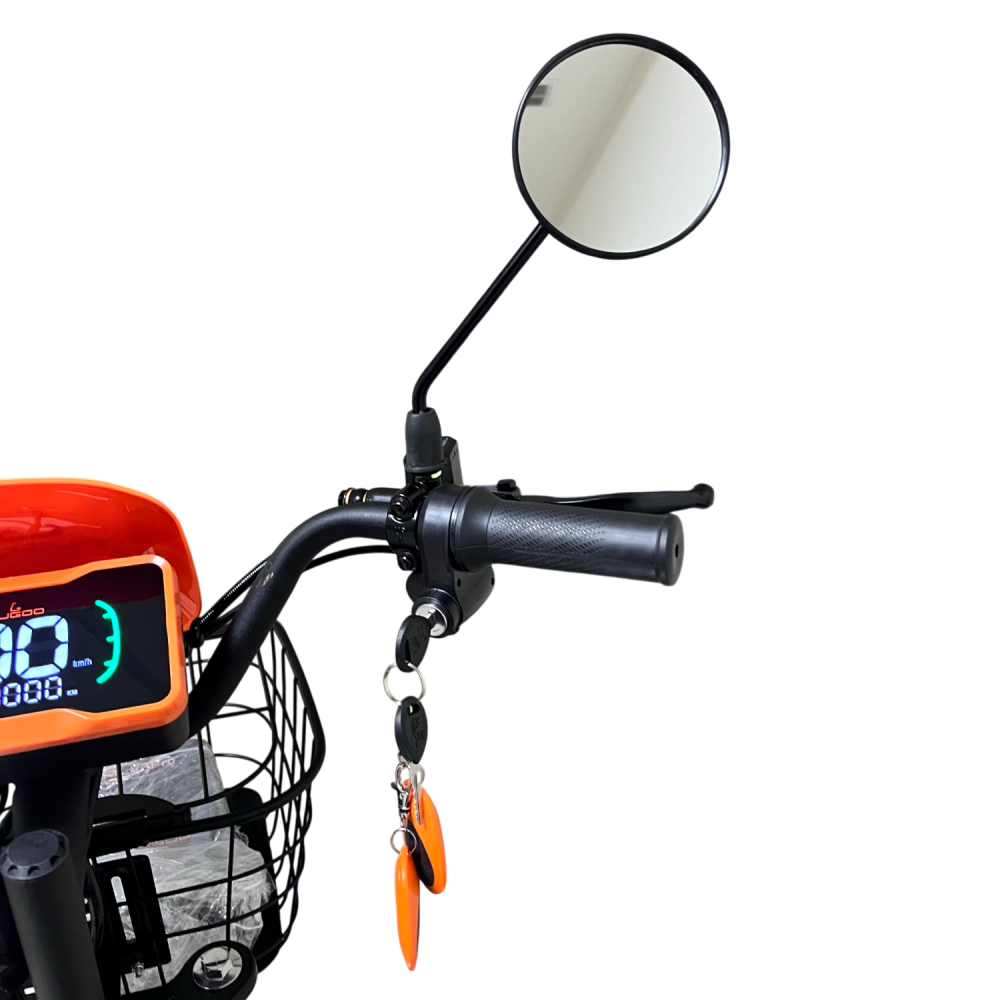 Задний привод с мотором 500 W разгоняет до 45–50 км/ч. Аккумулятор 21 Ah (60V) даёт до 60 км на одном заряде, полная зарядка — около 8 часов.